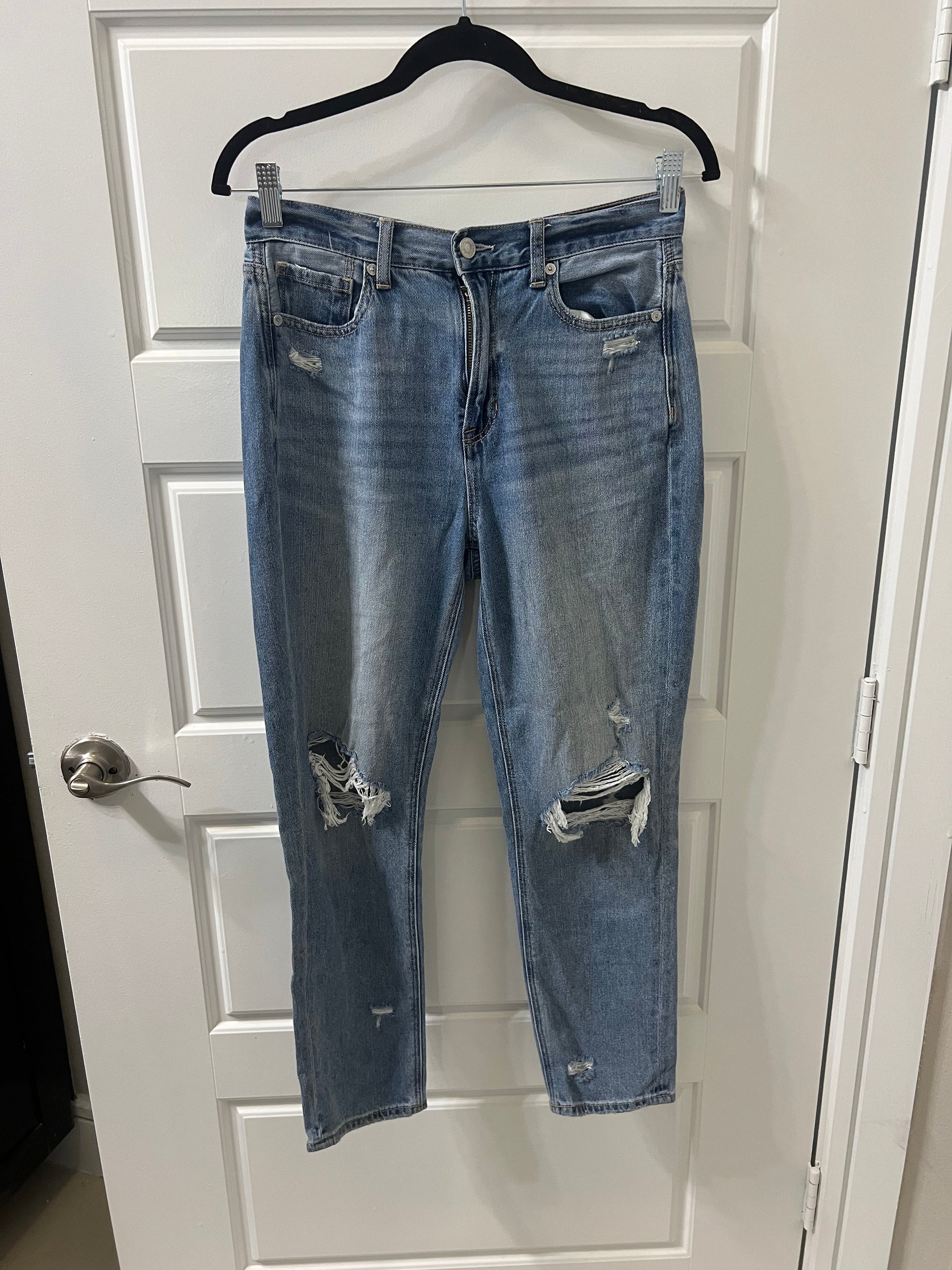 - Comfort: American Eagle's mom jeans are known for their comfort, often incorporating stretch for ease of movement, while maintaining the structured silhouette of traditional mom jeans.