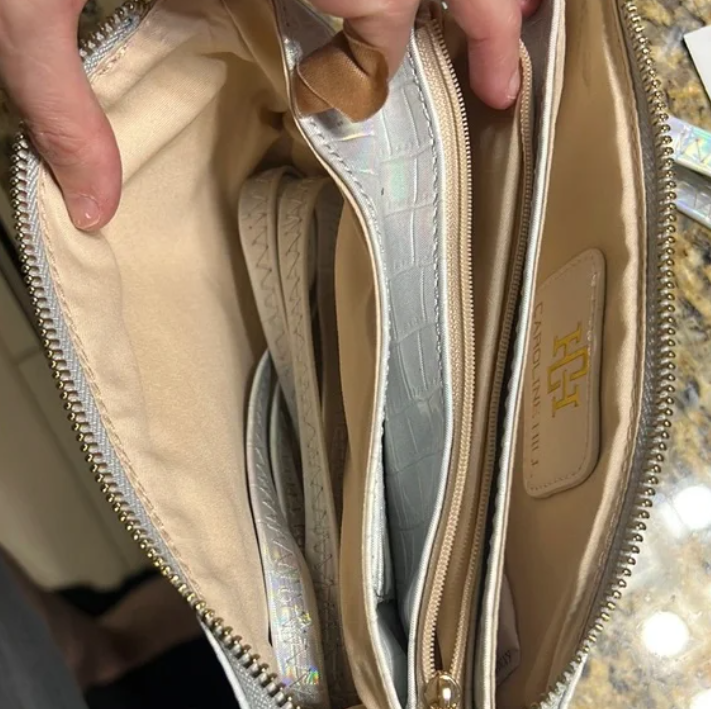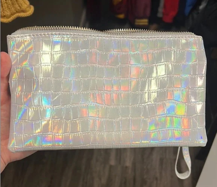 - Dimensions: While specific dimensions for this exact holographic version aren't provided, typical Liz Custom Collection Crossbody bags measure approximately 5" tall by 8.75" wide, offering ample space for your phone, wallet, keys, and other small items.